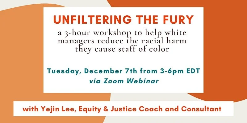 Many white people who manage staff of color are making things worse for their team members without knowing it. In order to prioritize the need for immediate reduction of harm experienced by BIPOC staff, Yejin has put together a 3-hour workshop for white managers who need advice on how to tangibly stop themselves from causing or compounding racial harm in the workplace.
